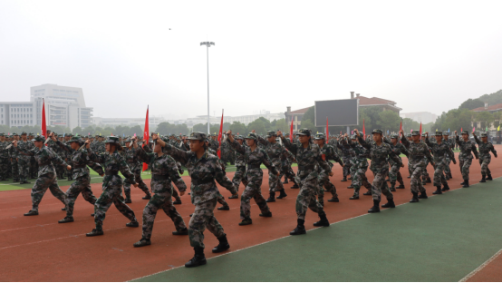 "All rise for the national flag and anthem!" With the solemn and stirring national anthem, the freshman military training summary ceremony officially commenced. At the ceremony, spirited performances of capture-the-enemy boxing, bayonet drills, and dagger drills by the instructors were showcased in sequence. The cheerleading performance by the School of Physical Education was equally impressive, adding vitality to the event. Subsequently, the freshmen marched past the rostrum in orderly formation to the rhythm of the march music, demonstrating the results of their military training and their high spirits as they embarked on a new journey of growth.