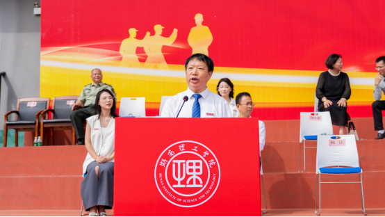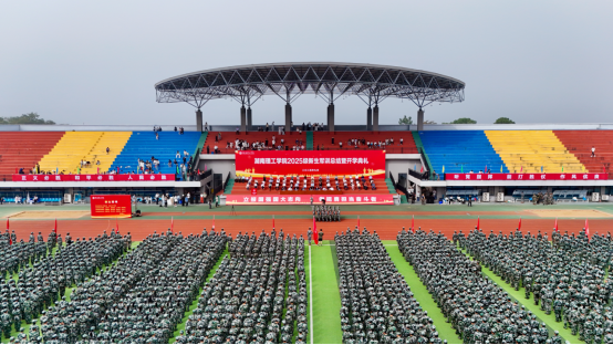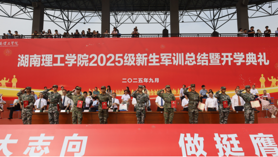 Campus News In the golden autumn season filled with the fragrance of osmanthus, youth begins its glorious chapter without regret. On the morning of September 28, the 2025 Freshman Military Training Summary and Opening Ceremony of Hunan Institute of Science and Technology (HNIST) was held at the South Campus athletic field. University leaders including Zhang Guoyun, Zeng Xiangjun, Xie Guihui, Xu Xiaoli, Xu Zhenxiang, Tang Xiaohong, Ding Yuejiao, Liu Changhui, and Hu Wenjing attended the ceremony, which was presided over by Xu Zhenxiang, Member of the Party Committee and Vice President.